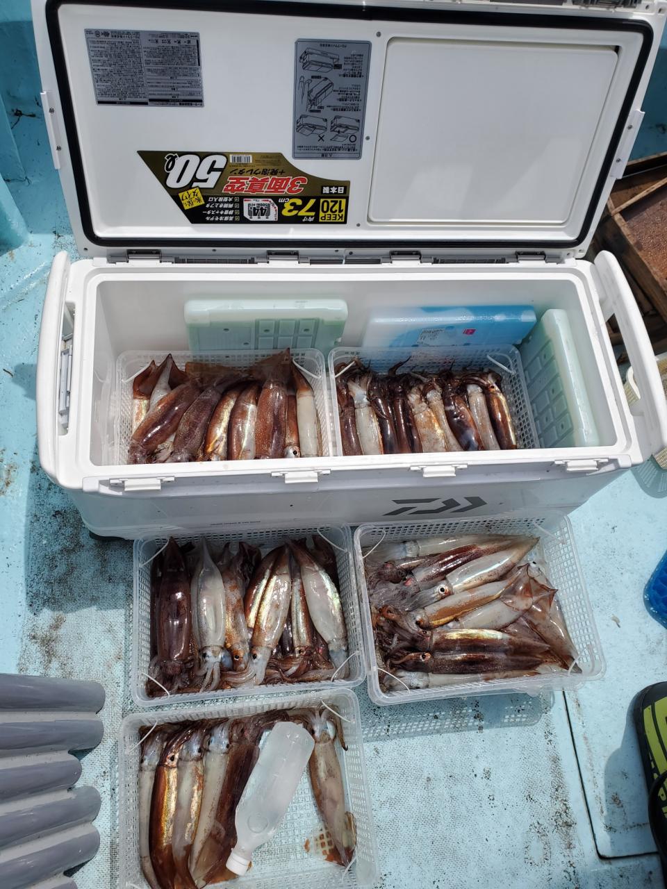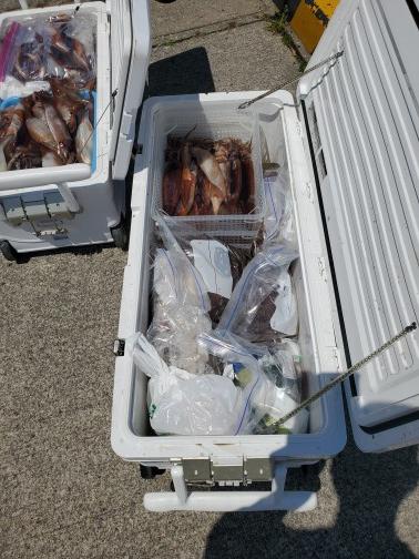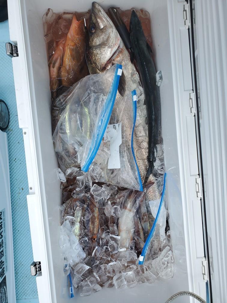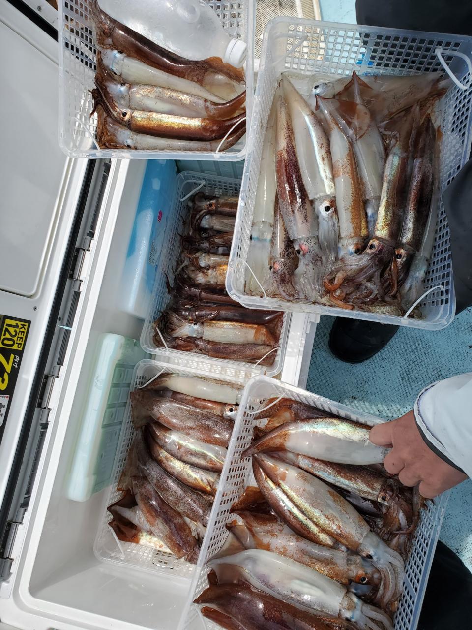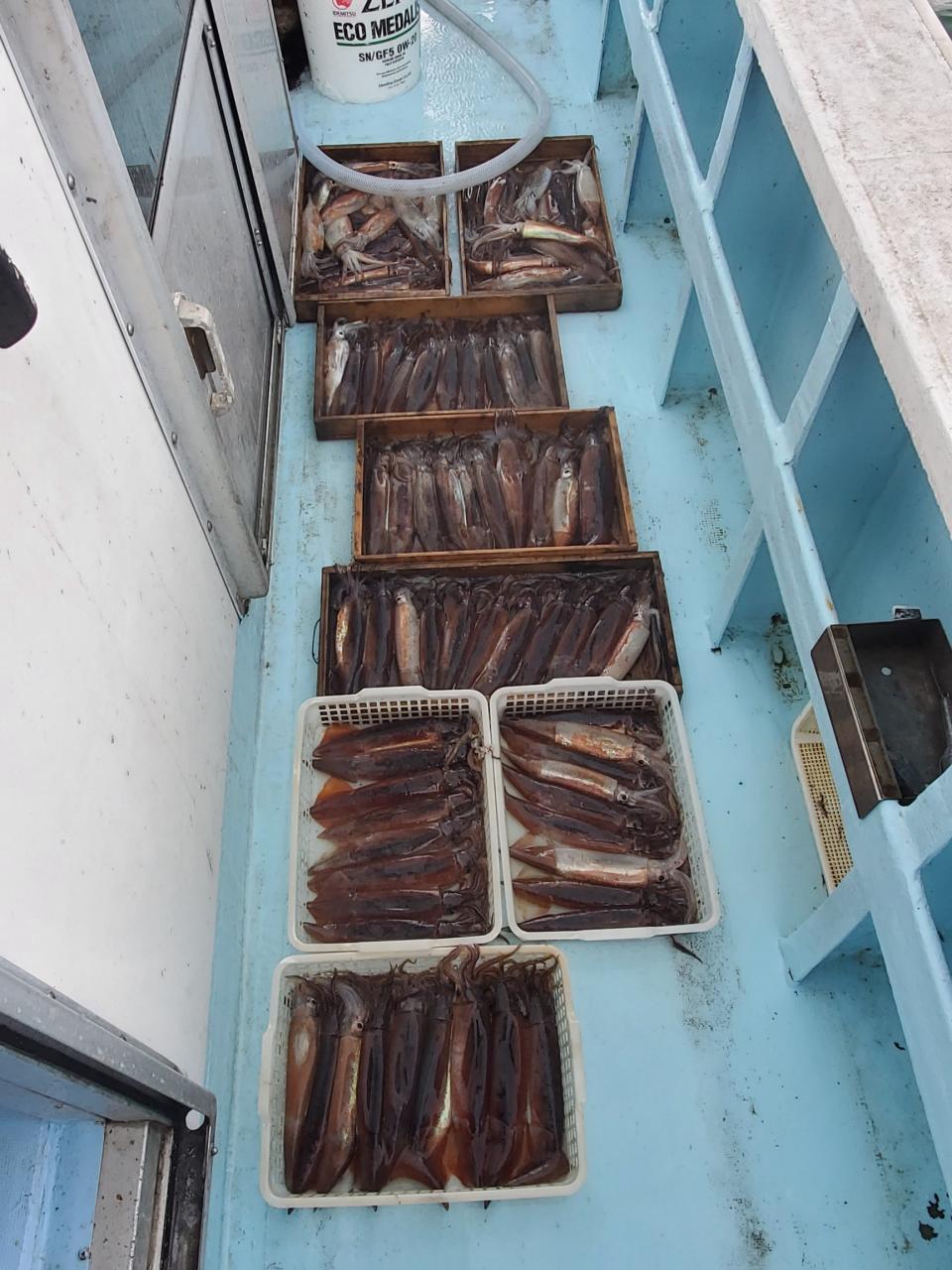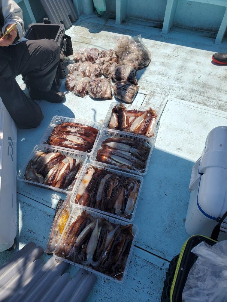 スズキ5匹、キジハタ3匹、カサゴ3匹スルメイカ竿頭64パイ